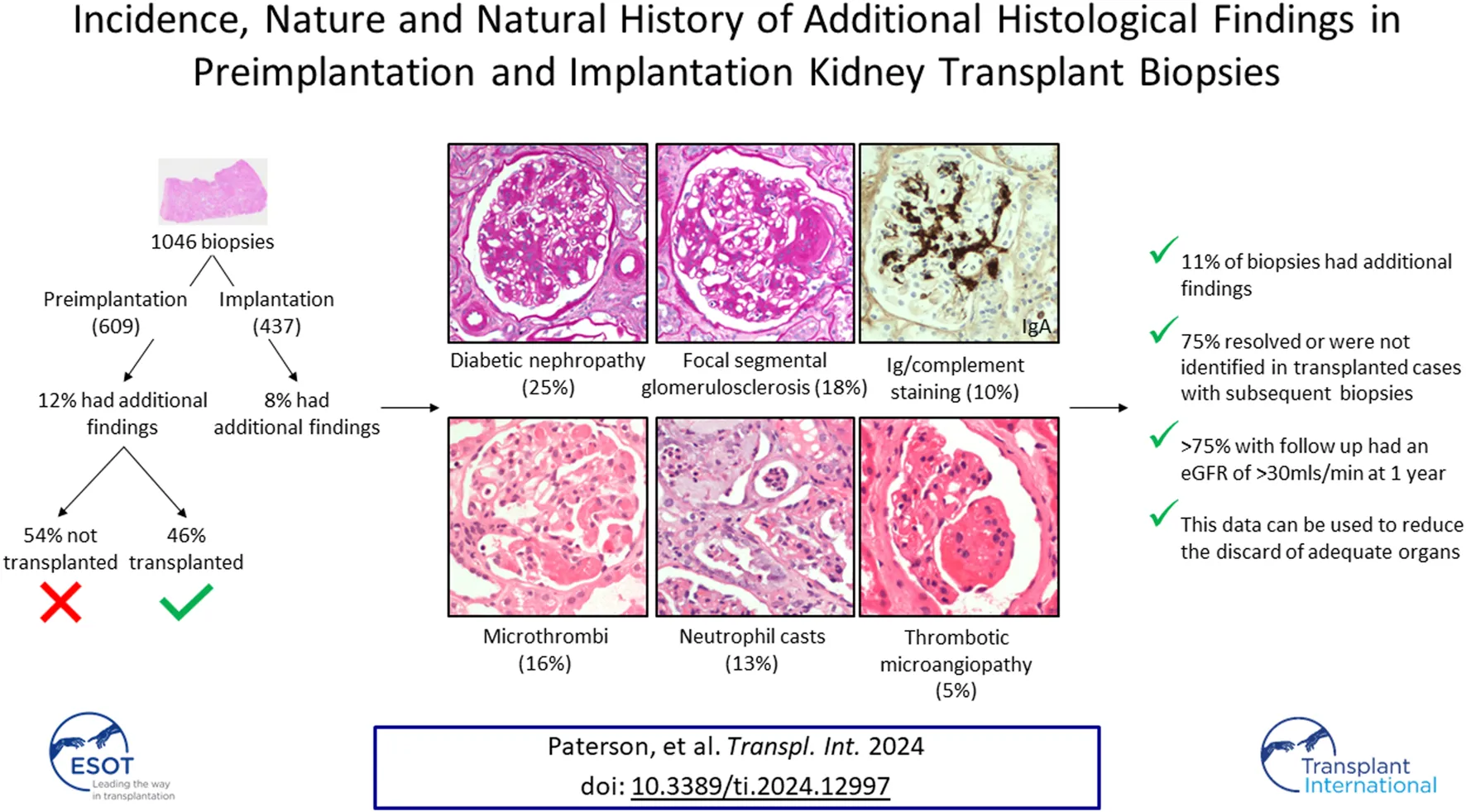 Paterson AL, Broecker V, Gray M, Chalisey A, Pettigrew GJ and Summers DM (2024) Incidence, Nature and Natural History of Additional Histological Findings in Preimplantation and Implantation Kidney Transplant Biopsies. Transpl Int 37:12997. doi: 10.3389/ti.2024.12997
