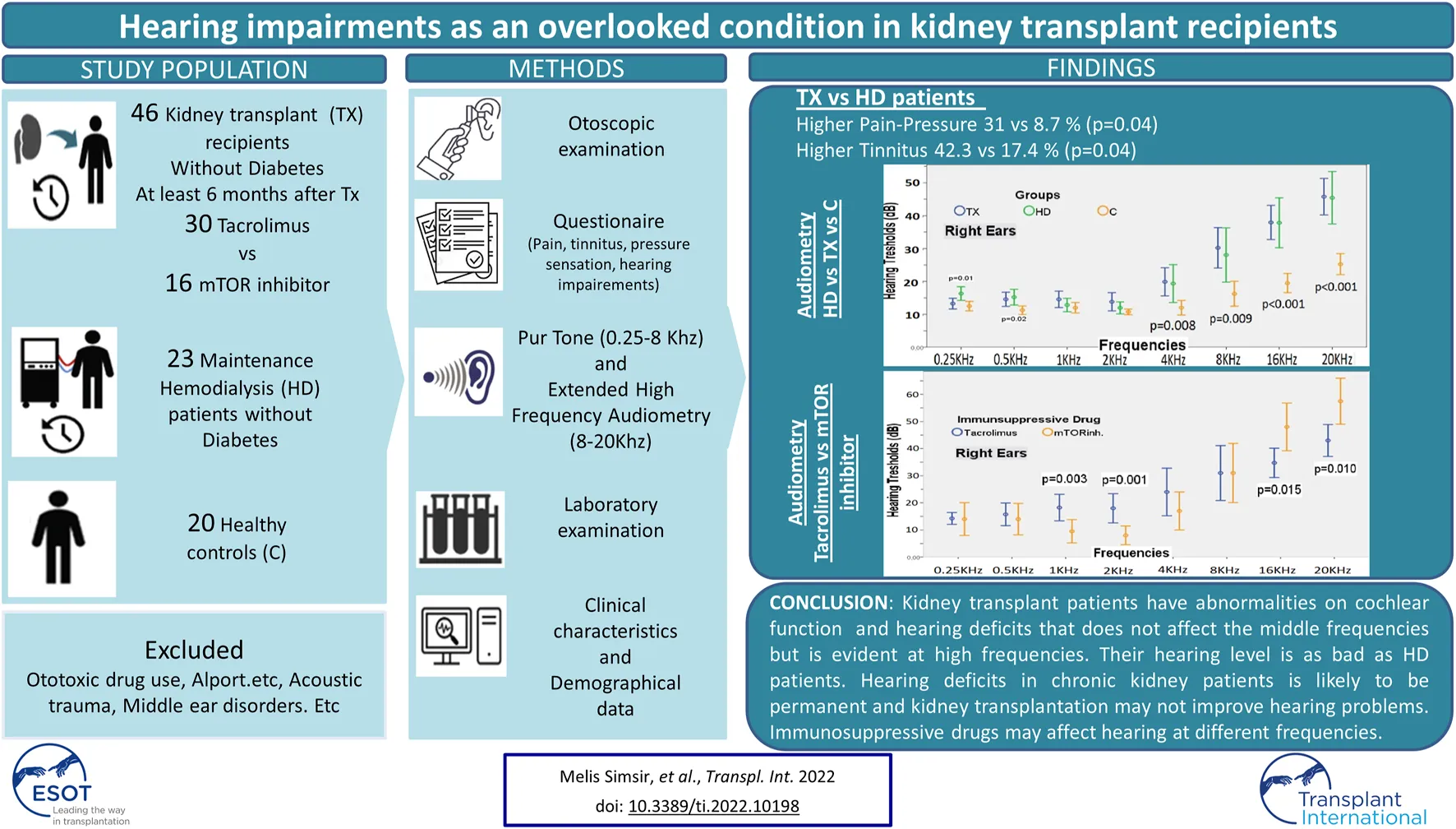 Simsir M, Yildiz MG, Karatas M, Dalgic A, Ozturk I, Tatar E, Eren N, Erken E, Gungor O and Altunoren O (2022) Hearing Impairments as an Overlooked Condition in Kidney Transplant Recipients. Transpl Int 35:10198. doi: 10.3389/ti.2022.10198