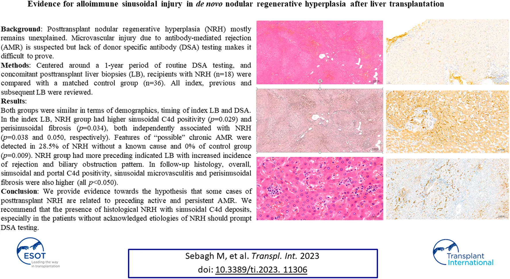 Sebagh M, Yilmaz F, Kounis I, Saliba F, Feray C, Taupin J-L, Cherqui D, Azoulay D, Samuel D, Coilly A, Demetris A-J and Neil D (2023) Evidence for Alloimmune Sinusoidal Injury in De Novo Nodular Regenerative Hyperplasia After Liver Transplantation. Transpl Int 36:11306. doi: 10.3389/ti.2023.11306