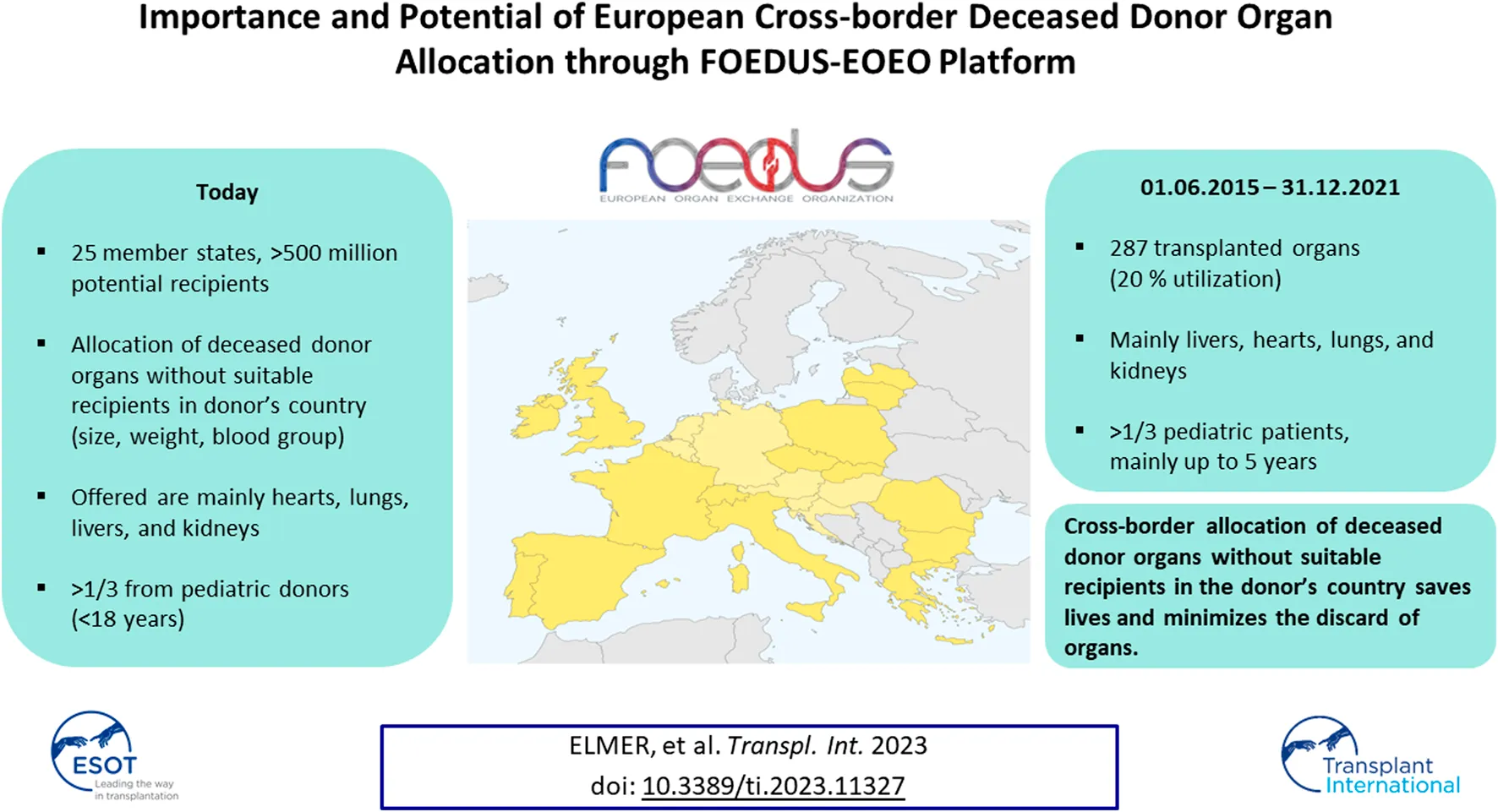 Elmer A, Lütolf VV, Carella C, Beyeler F, Krügel N, Straka L, Cardillo M and Immer F (2023) Importance and Potential of European Cross-Border Deceased Donor Organ Allocation Through FOEDUS-EOEO Platform. Transpl Int 36:11327. doi: 10.3389/ti.2023.11327
