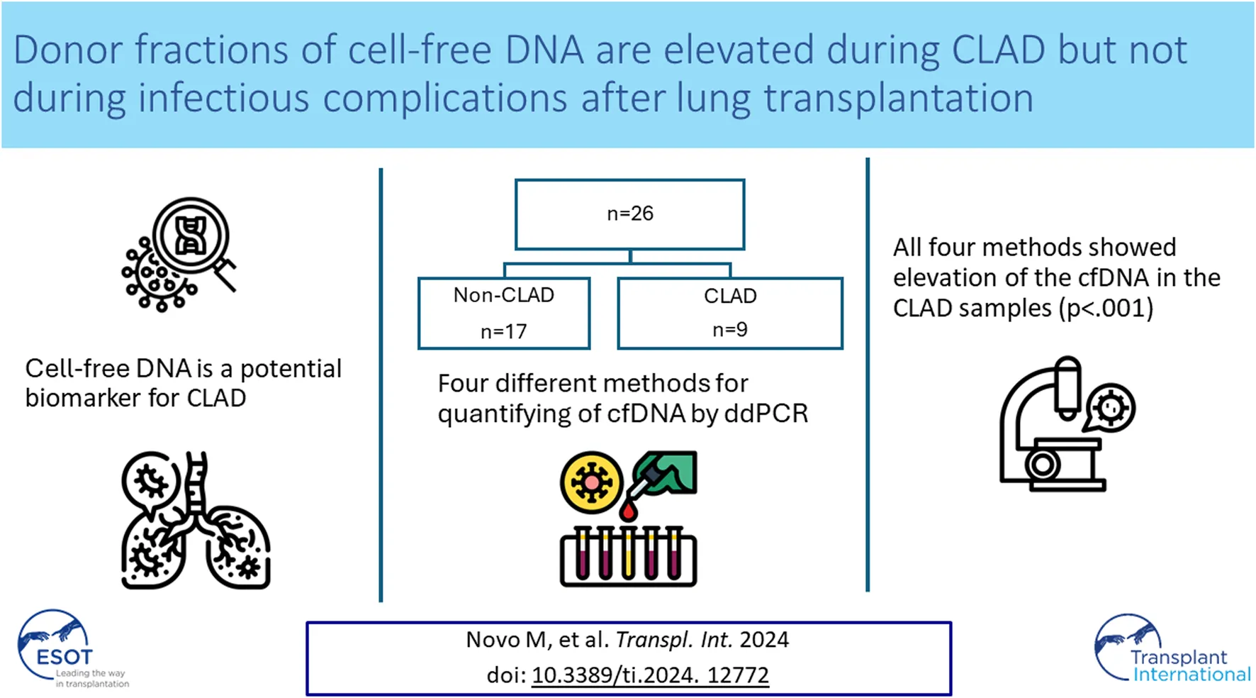 Novo M, Nordén R, Westin J, Dellgren G, Böhmer J, Ricksten A and Magnusson JM (2024) Donor Fractions of Cell-Free DNA Are Elevated During CLAD But Not During Infectious Complications After Lung Transplantation. Transpl Int 37:12772. doi: 10.3389/ti.2024.12772