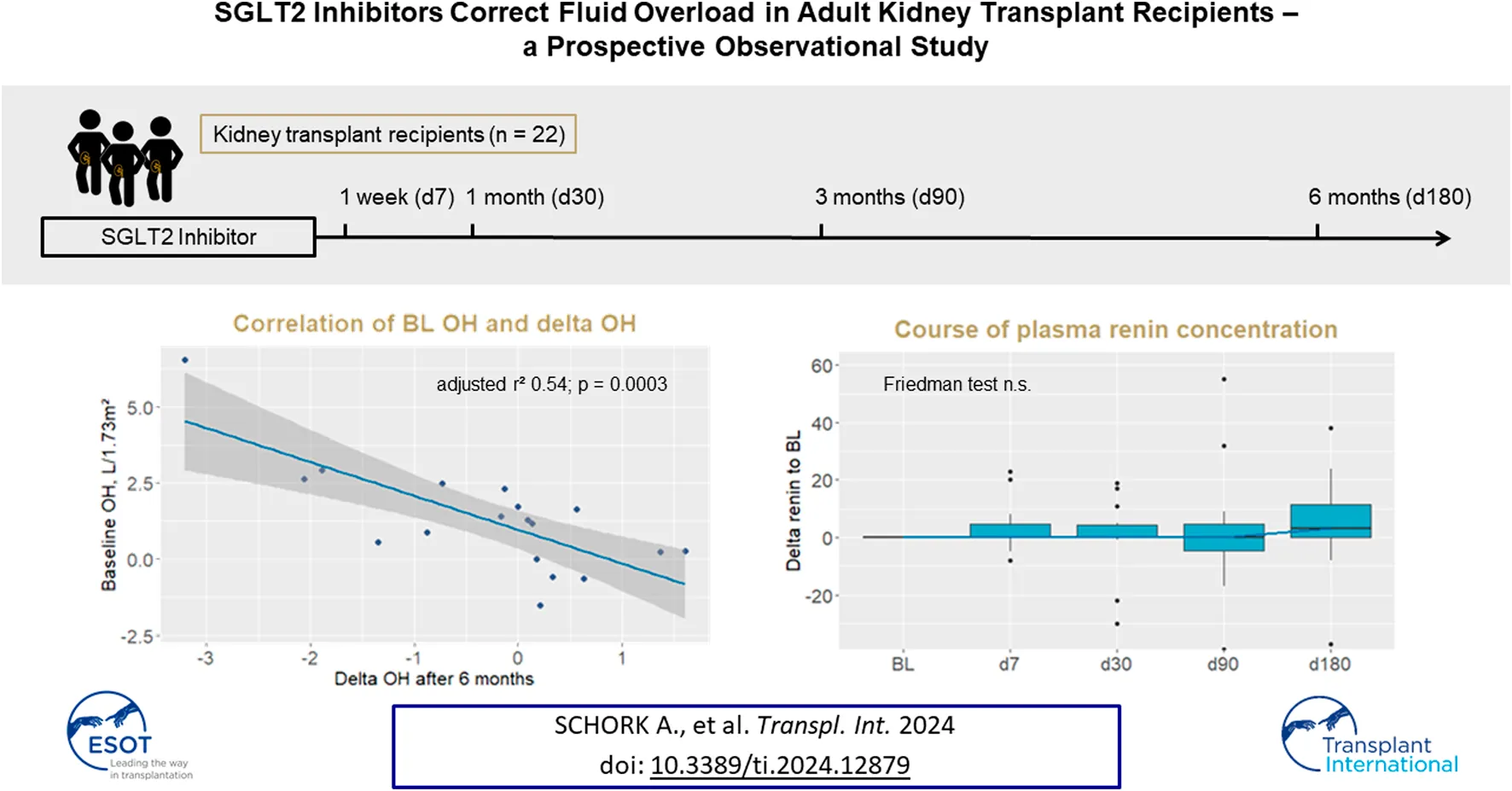 Schork A, Eberbach M-L, Artunc F, Bohnert BN, Eisinger F, Heister DJ, Vosseler D, Nadalin S, Birkenfeld AL, Heyne N and Guthoff M (2024) SGLT2 Inhibitors Correct Fluid Overload in Adult Kidney Transplant Recipients—A Prospective Observational Study. Transpl Int 37:12879. doi: 10.3389/ti.2024.12879