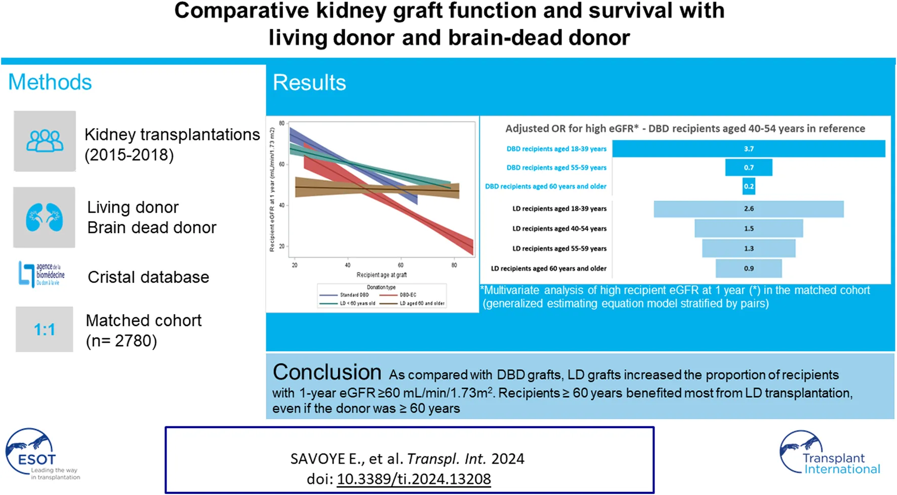 Savoye E, Santin G, Legeai C, Kerbaul F, Gaillard F, Pastural M and the CRISTAL Registry Study Group (2024) Comparison of Kidney Graft Function and Survival in an Emulated Trial With Living Donors and Brain-Dead Donors. Transpl Int 37:13208. doi: 10.3389/ti.2024.13208