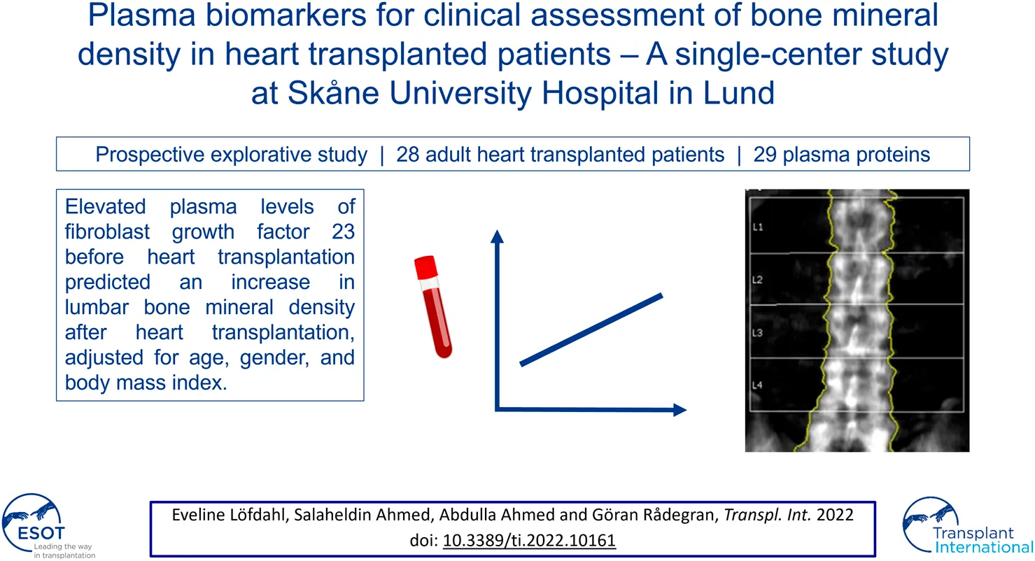 Löfdahl E, Ahmed S, Ahmed A and Rådegran G (2022) Plasma Biomarkers for Clinical Assessment of Bone Mineral Density in Heart Transplanted Patients—A Single-Center Study at Skåne University Hospital in Lund. Transpl Int 35:10161. doi: 10.3389/ti.2022.10161