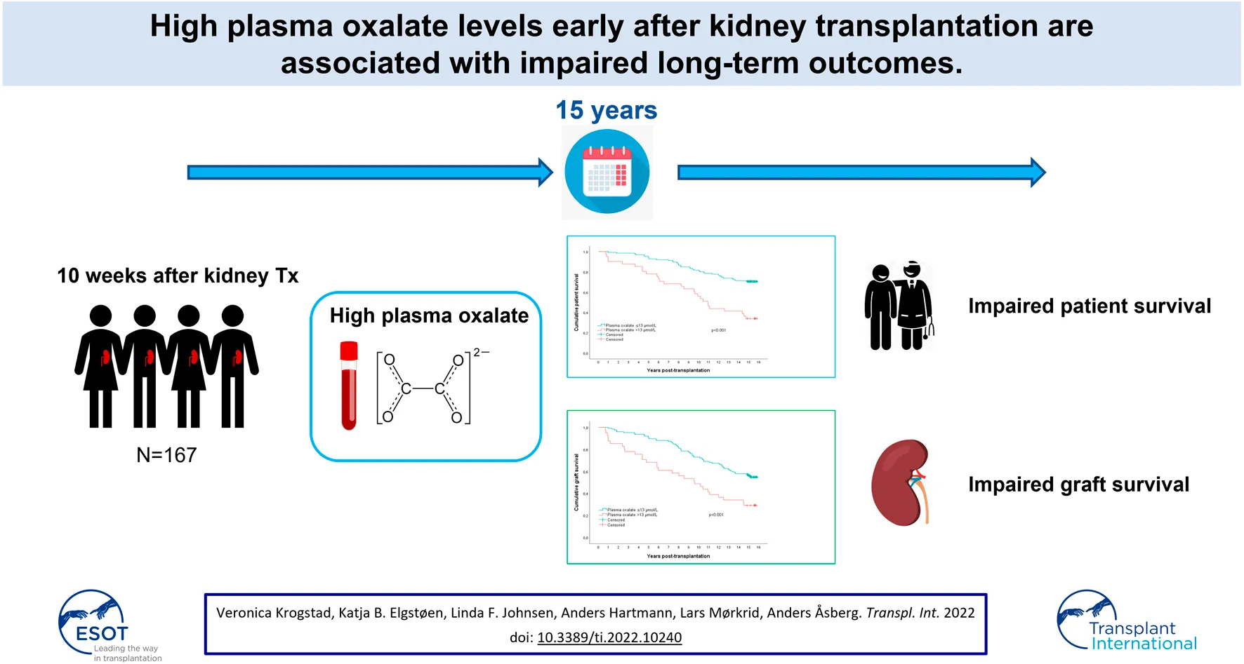 Krogstad V, Elgstøen KBP, Johnsen LF, Hartmann A, Mørkrid L and Åsberg A (2022) High Plasma Oxalate Levels Early After Kidney Transplantation Are Associated With Impaired Long-Term Outcomes. Transpl Int 35:10240. doi: 10.3389/ti.2022.10240
