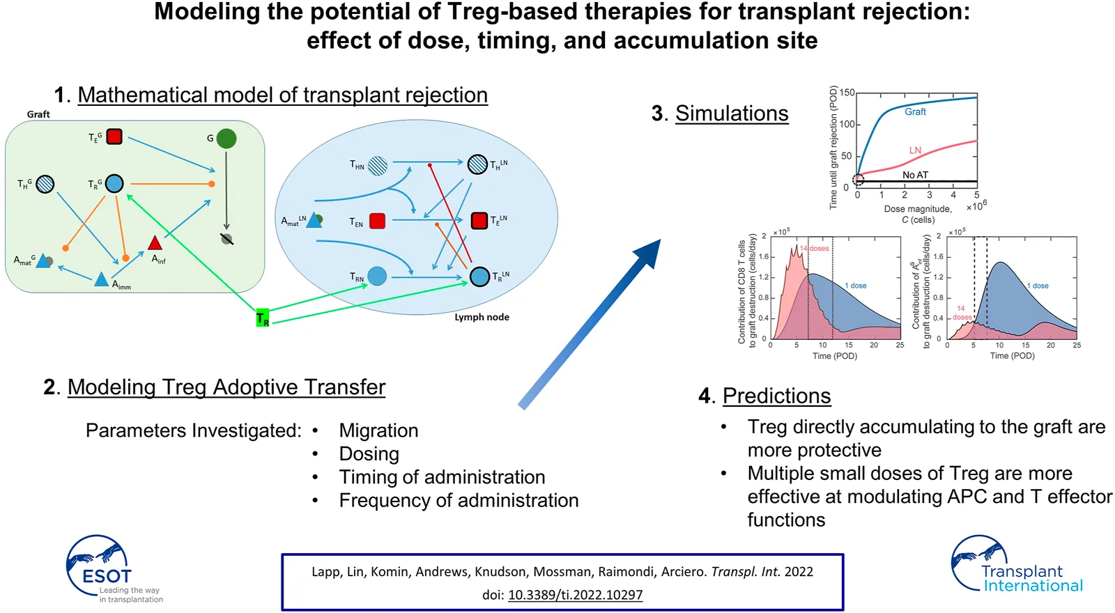 Lapp MM, Lin G, Komin A, Andrews L, Knudson M, Mossman L, Raimondi G and Arciero JC (2022) Modeling the Potential of Treg-Based Therapies for Transplant Rejection: Effect of Dose, Timing, and Accumulation Site. Transpl Int 35:10297. doi: 10.3389/ti.2022.10297