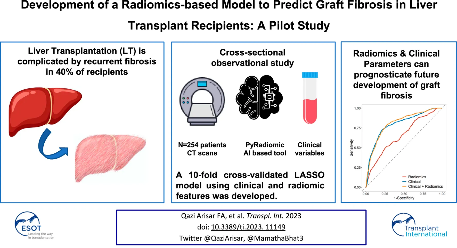 Qazi Arisar FA, Salinas-Miranda E, Ale Ali H, Lajkosz K, Chen C, Azhie A, Healy GM, Deniffel D, Haider MA and Bhat M (2023) Development of a Radiomics-Based Model to Predict Graft Fibrosis in Liver Transplant Recipients: A Pilot Study. Transpl Int 36:11149. doi: 10.3389/ti.2023.11149