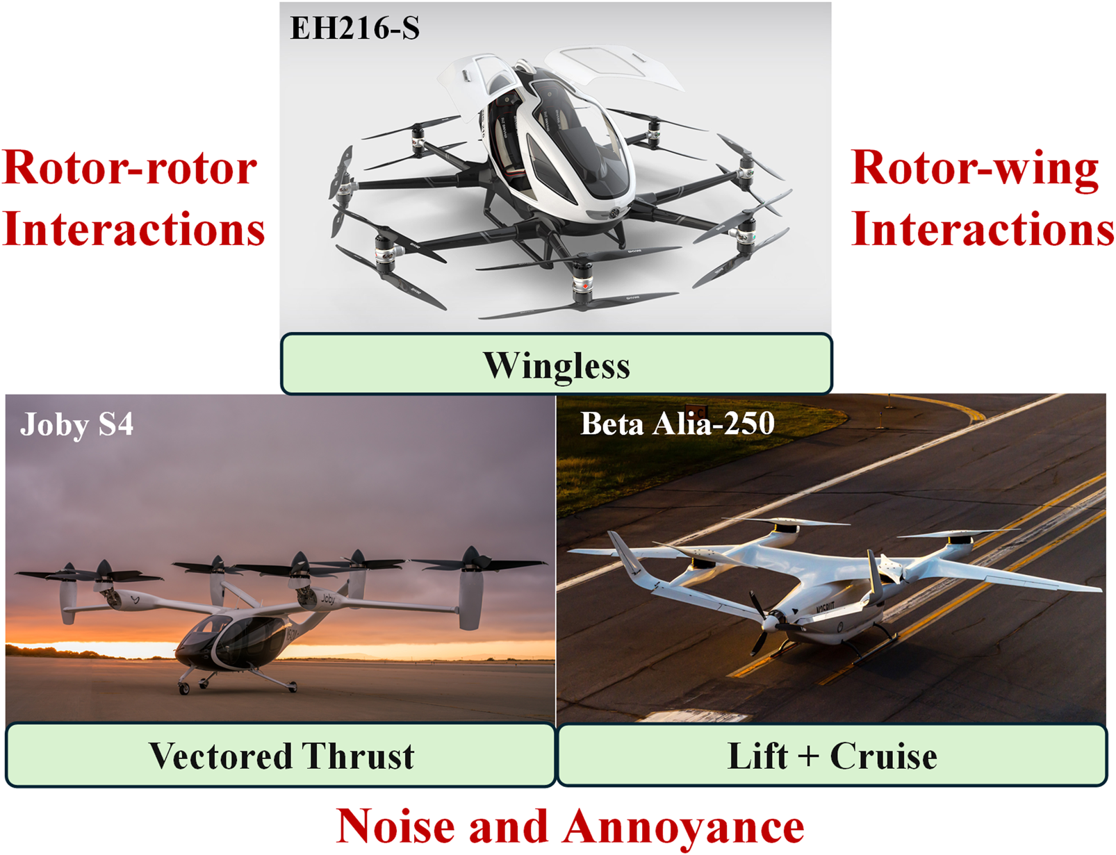 According to statistics from the Vertical Flight Society (VFS), more than 1,100 eVTOL configuration designs have been developed to date, with the vast majority adopting multirotor layouts. In a multirotor system, important factors affecting noise generation and radiation are the aerodynamic interactions among rotors and between the rotors and the wing or fuselage. These interactions lead to unsteady aerodynamic force fluctuations and the emergence of additional noise sources [6, 7].