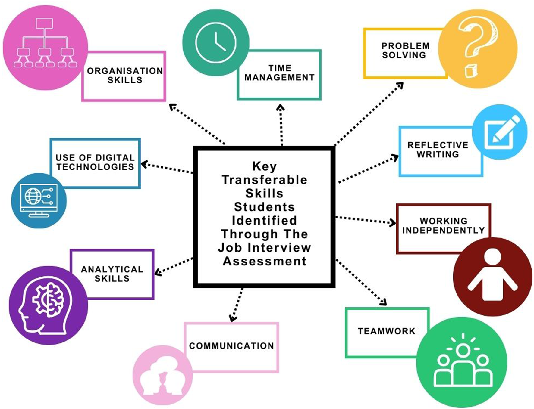 The introduction of these workshops, coupled with the collaborative changes to the job interview assessment mark scheme and grade weighting in 2023, highlights Astons commitment to graduate employability for cohort demographic. The aim of this study was to evaluate the effectiveness of the remodelled job interview assessment by identifying if Biomedical science students could recognise and effectively communicate transferable skills actively sought by employers.