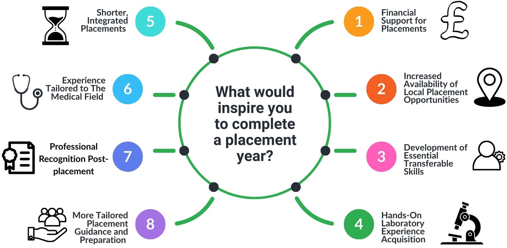 Respondents expressed strong opinions about the key factors that would motivate them to consider a placement opportunity (Figure 4). The free-text responses provided valuable insights, with students offering specific and detailed comments: