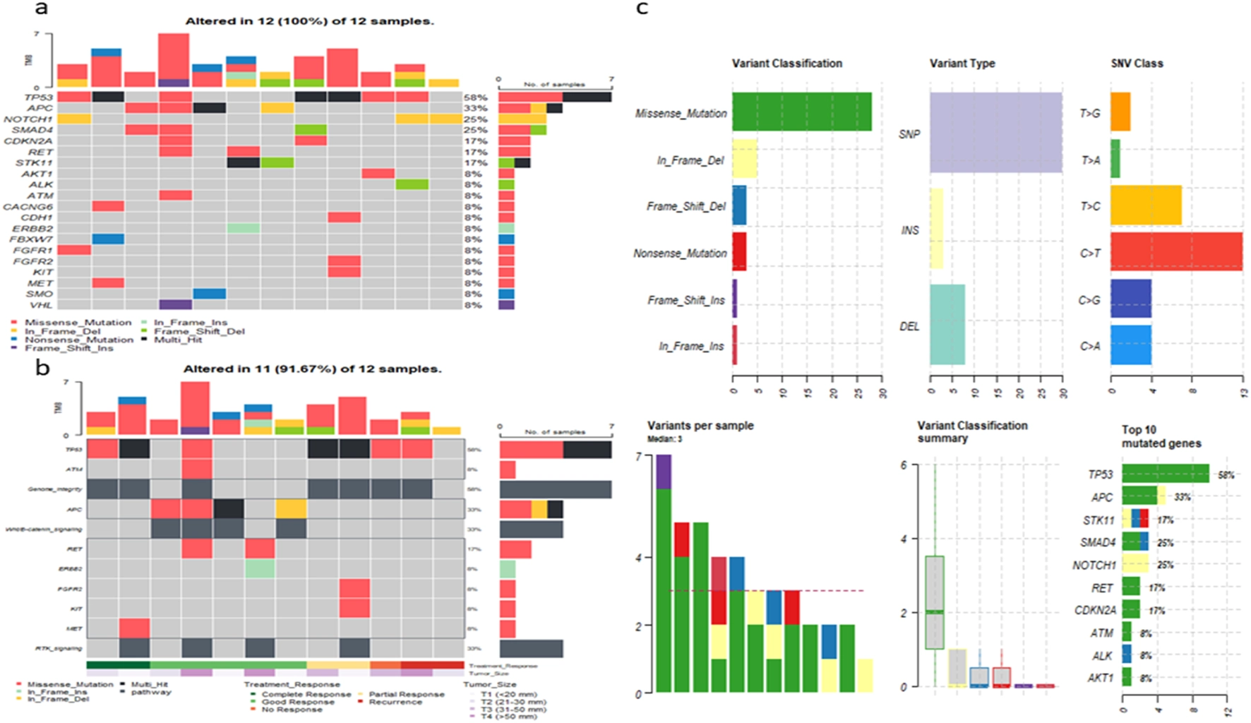 The final curated list of high-confidence variants was analyzed and visualized in RStudio (Version 2024.12.0+467). The maftools (version 2.12.0) and ComplexHeatmap packages (version 2.12.1) were used to generate comprehensive oncoplots, respectively, while additional custom plots were created using ggplot2 (version 3.5.1).