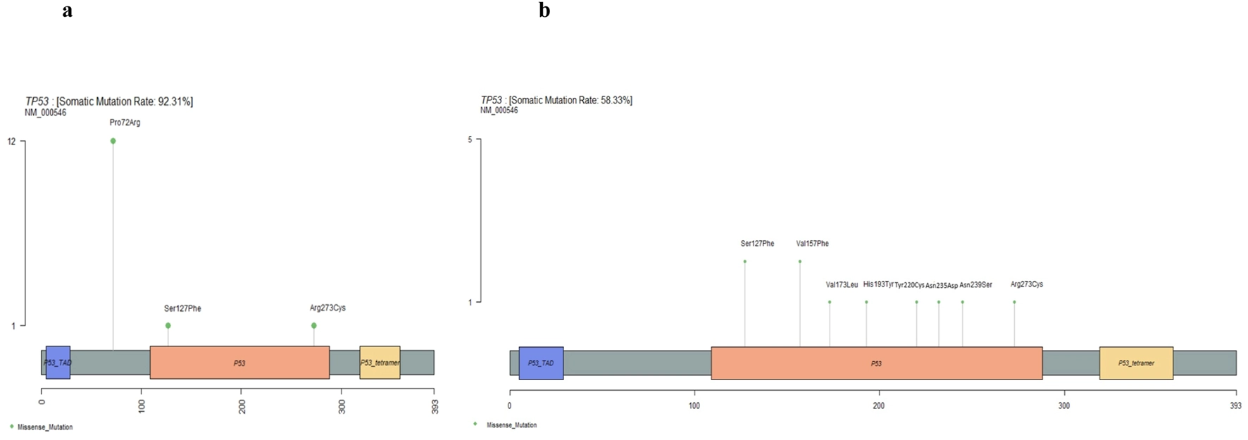 | TP53 | Chr17: 7578210 | NM_000546.6 c.639A>G p.(Arg213 =) | Synonymous Exon: 6 | rs1800372 | Benign | 4/12 (33) | 0.014 |