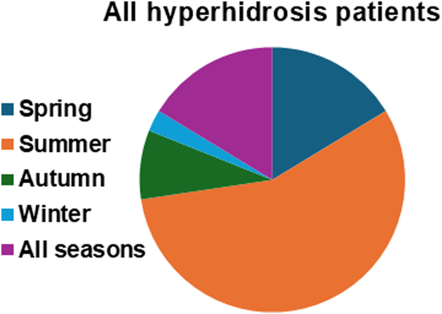 Furthermore, considering that few patients (7.9%) have a history of hyperhidrosis treatment, it is important to combine treatment for skin disease with the latest effective hyperhidrosis treatments, such as topical anticholinergic agents.