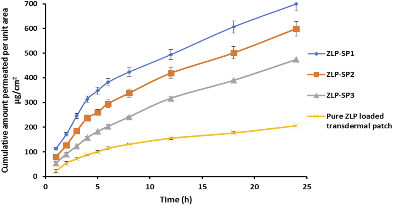 Enhancement ratio (ER) (Equation 6) was utilized to compare the ZLP flux from ZLP-SP formulations and pure ZLP-loaded transdermal patches.
