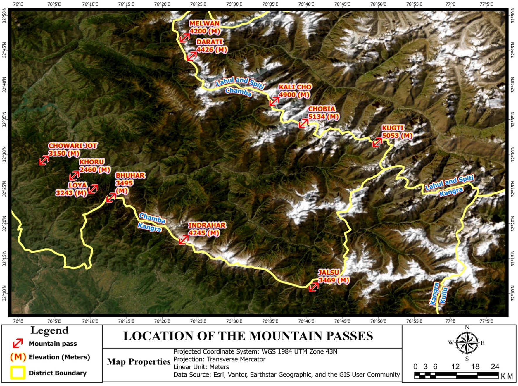 Seasonal Migratory Routes of Gaddi Shepherds across the State of Himachal Pradesh, India. Source: Map created using ArcGIS Pro 3.0.2.