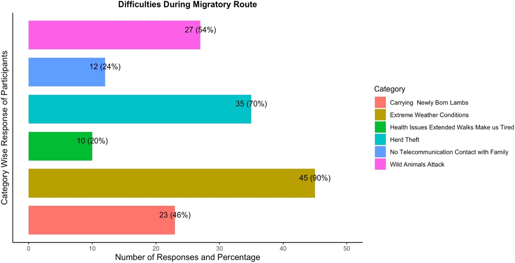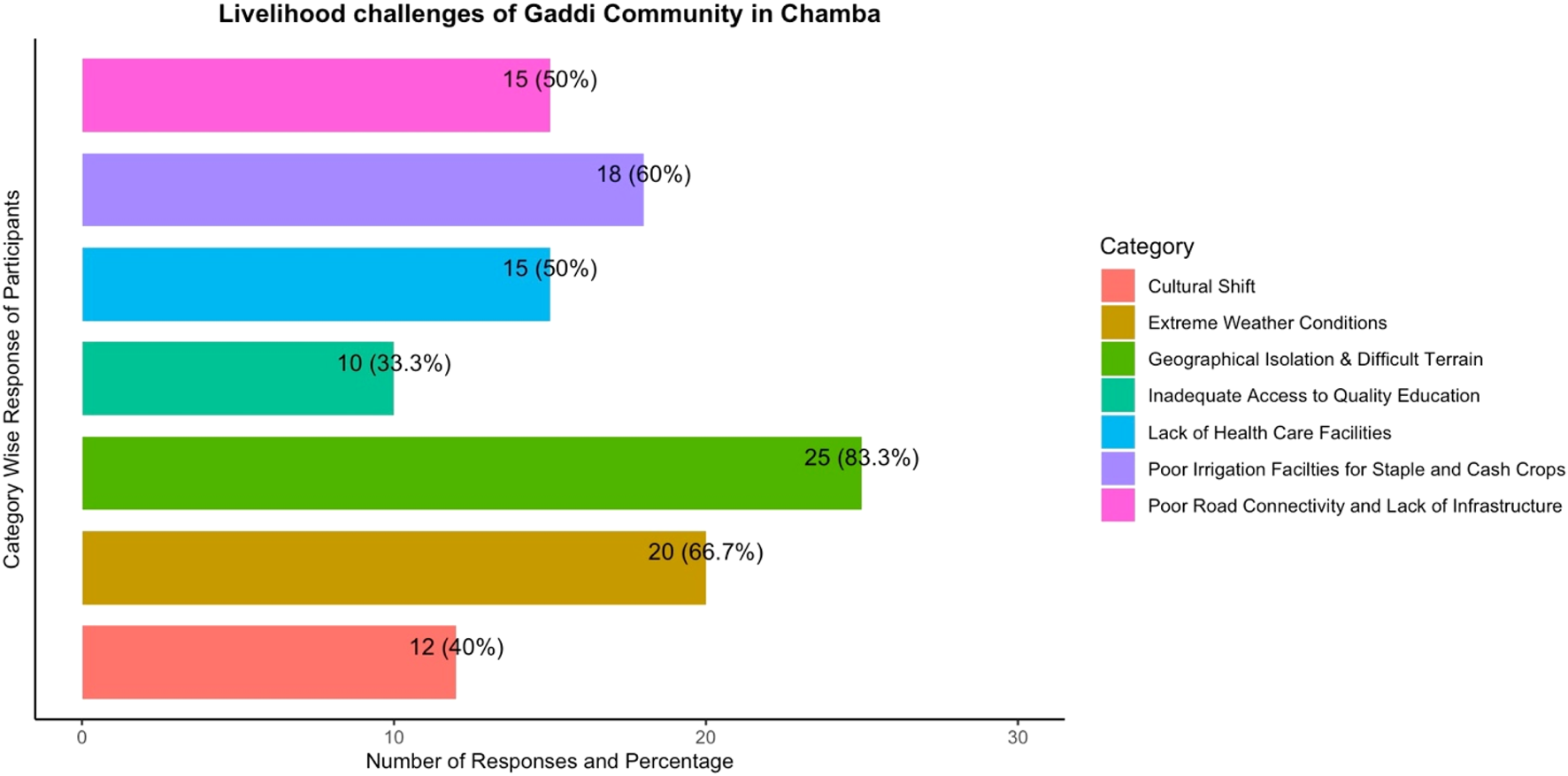 Further, natural disasters such as landslides and heavy downpours add to the losses and challenges. Another factor in this category is the reduced availability of water. Most of the natural sources of water are drying up. Therefore, Gaddi men have to travel longer distances for alternative sources of water. All these impact the health of the livestock as well as the herders (Ramprasad et al., 2020a). Lack of health facilities at the high alpine areas makes them even more vulnerable to disease. While Gaddis are knowledgeable and able to treat common diseases using natural resources, emergencies become fatal (Sharma et al., 2022).