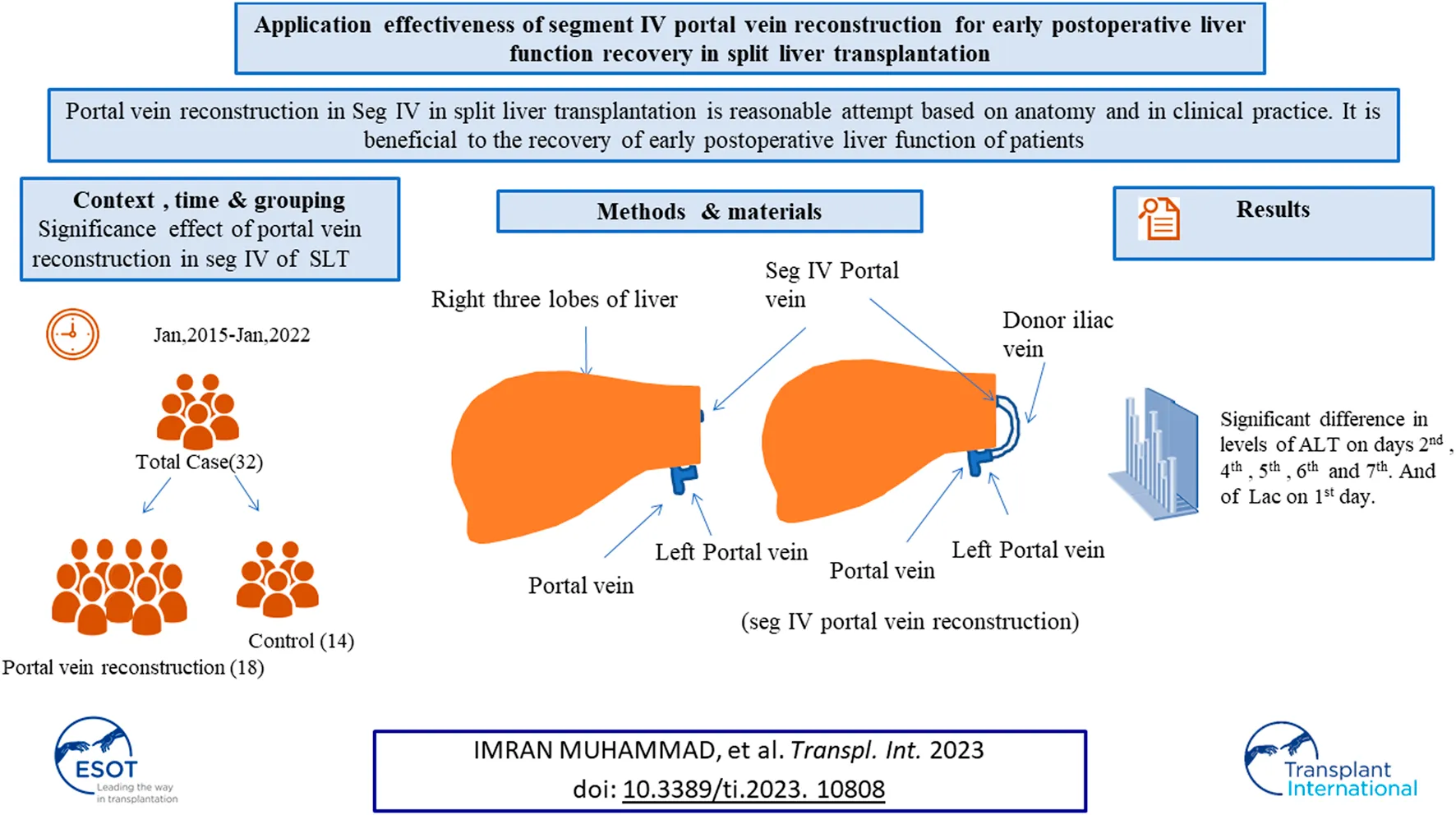 Muhammad I, Rehman FU.L., Wang F, Xiong X, Lianghao Z and Jinzhen C (2023) Application Effectiveness of Segment IV Portal Vein Reconstruction for Early Postoperative Liver Function Recovery in Split Liver Transplantation. Transpl Int 36:10808. doi: 10.3389/ti.2023.10808