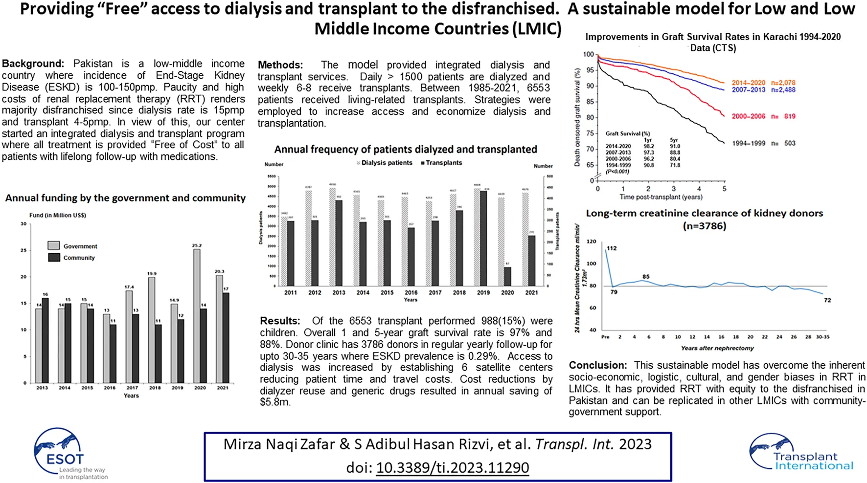 Zafar MN and Rizvi SAH (2023) Providing “Free” Access to Dialysis and Transplant to the Disfranchised. A Sustainable Model for Low and Low Middle Income Countries (LMICs). Transpl Int 36:11290. doi: 10.3389/ti.2023.11290
