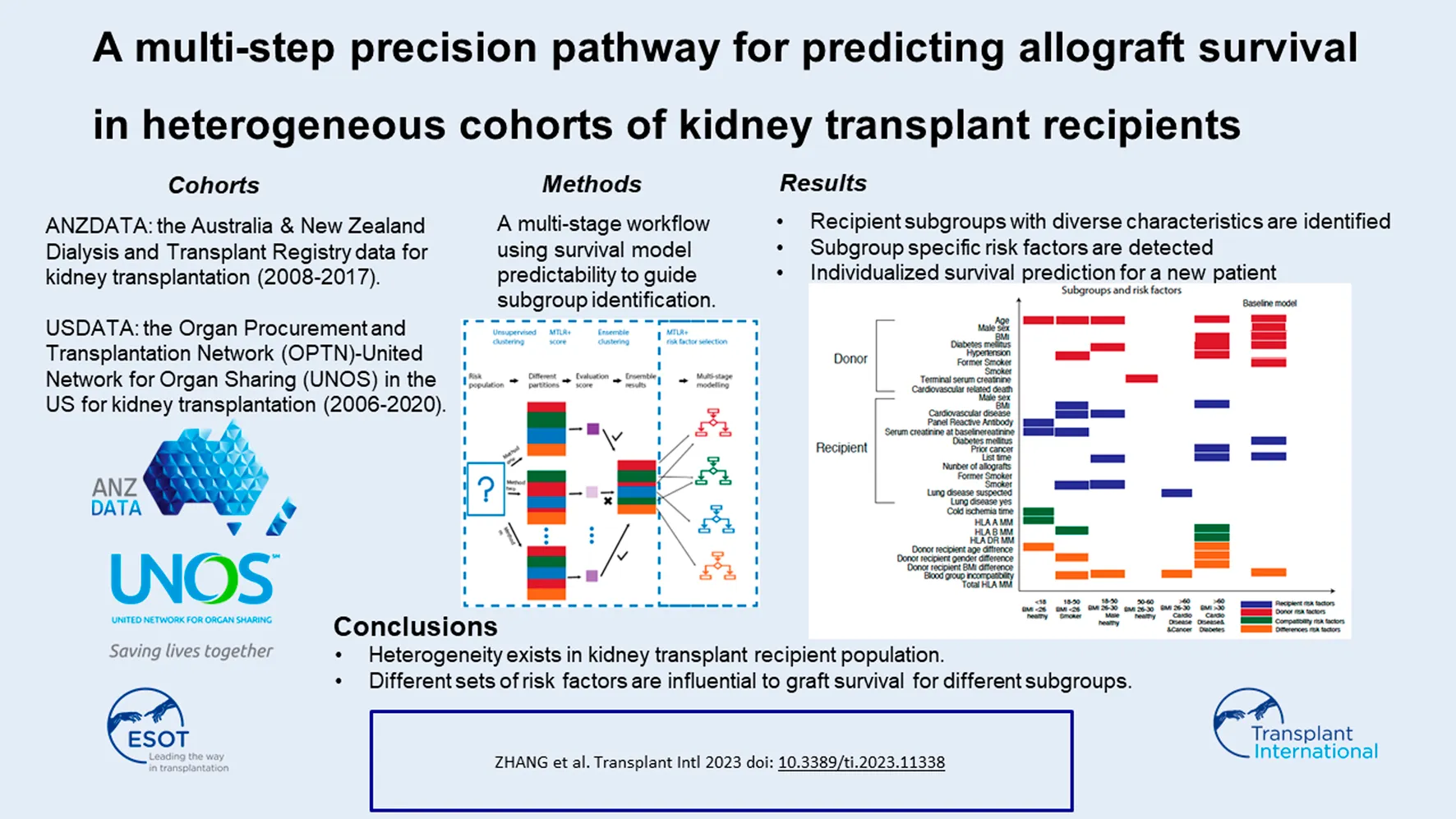 Zhang Y, Deng D, Muller S, Wong G and Yang JYH (2023) A Multi-Step Precision Pathway for Predicting Allograft Survival in Heterogeneous Cohorts of Kidney Transplant Recipients. Transpl Int 36:11338. doi: 10.3389/ti.2023.11338