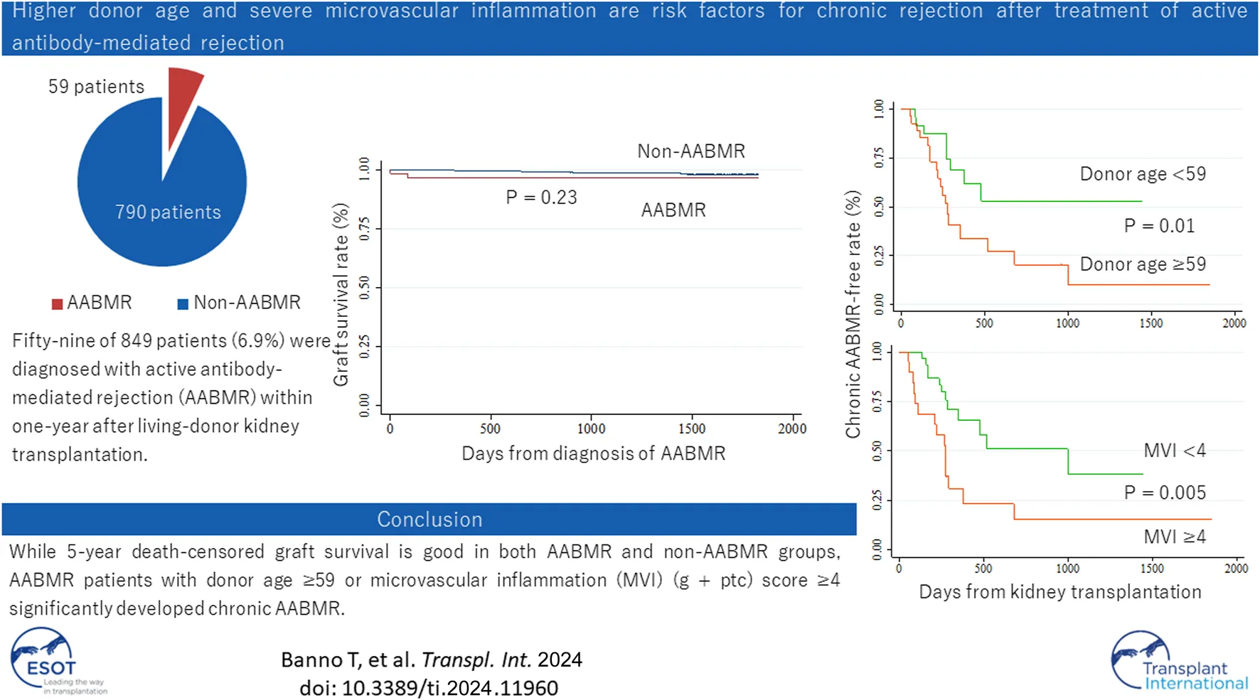 Banno T, Hirai T, Oki R, Yagisawa T, Unagami K, Kanzawa T, Omoto K, Shimizu T, Ishida H and Takagi T (2024) Higher Donor Age and Severe Microvascular Inflammation Are Risk Factors for Chronic Rejection After Treatment of Active Antibody-Mediated Rejection. Transpl Int 37:11960. doi: 10.3389/ti.2024.11960
