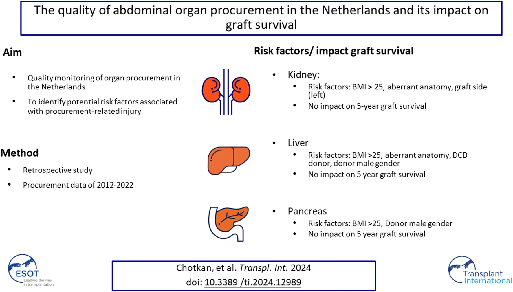Chotkan K.A., Alwayn I.P.J., Hemke A.C., Baranski A., Nijboer W., Pol R.A. and Braat A.E. (2024) Ten Years of Quality Monitoring of Abdominal Organ Procurement in the Netherlands and Its Impact on Transplant Outcome. Transpl Int 37:12989. doi: 10.3389/ti.2024.12989
