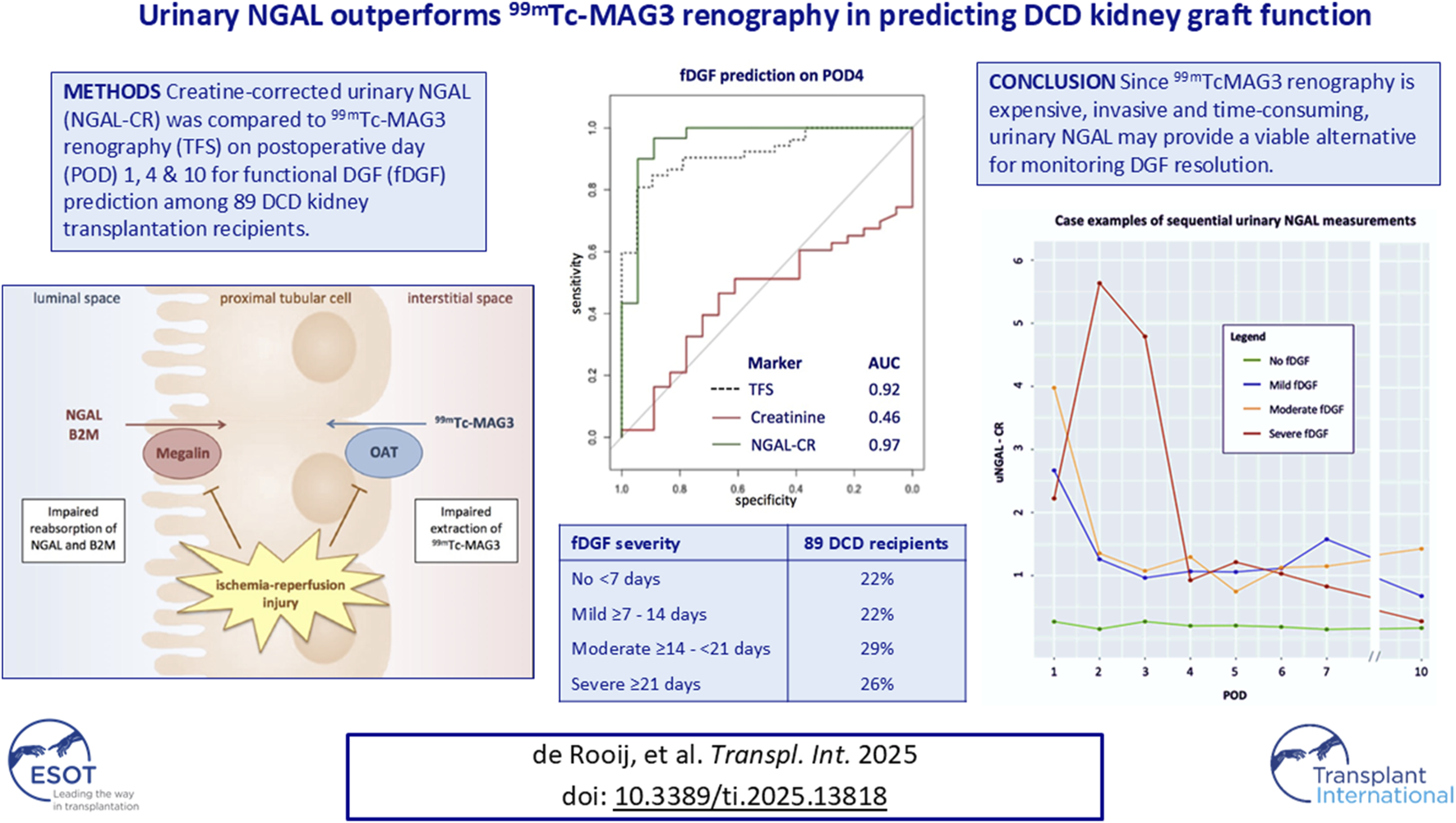 de Rooij ENM, van Duijl TT, Hoogeveen EK, Romijn FPHTM, Dekker FW, van Kooten C, Cobbaert CM and de Fijter JW (2025) Urinary NGAL Outperforms 99mTc-MAG3 Renography in Predicting DCD Kidney Graft Function. Transpl. Int. 38:13818. doi: 10.3389/ti.2025.13818