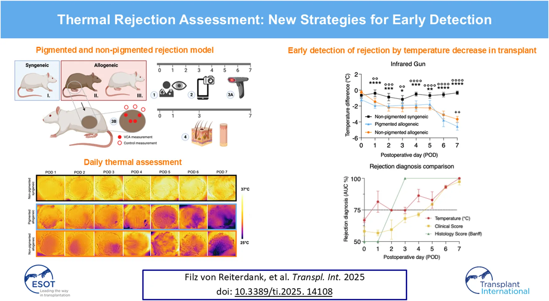 Filz von Reiterdank I, Jain R, de Clermont-Tonnerre E, Tchir A, Cetrulo CL, Lellouch AG, Coert JH, Mink van der Molen AB, Tessier SN and Uygun K (2025) Thermal Rejection Assessment: New Strategies for Early Detection. Transpl. Int. 38:14108. doi: 10.3389/ti.2025.14108