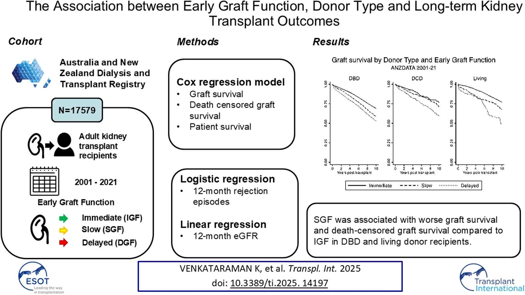 Venkataraman K, Irish GL., Collins MG. and Clayton PA. (2025) The Association Between Early Graft Function, Donor Type and Long-Term Kidney Transplant Outcomes. Transpl. Int. 38:14197. doi: 10.3389/ti.2025.14197
