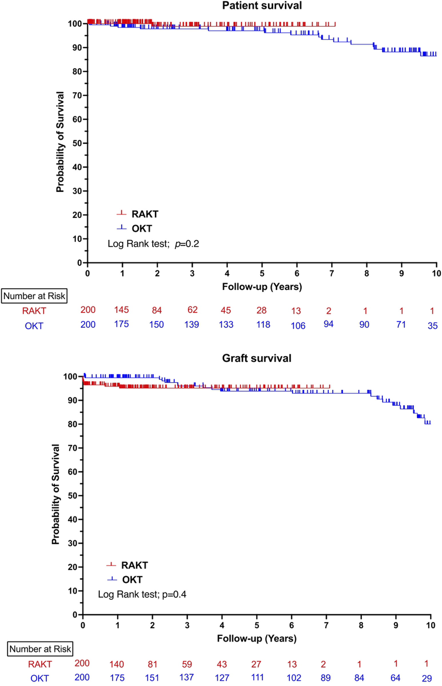 Finally, a total of 200 living donor RAKT were compared to the last 200 living-donor OKT whose recipients were eligible for a living-donor RAKT (i.e., exclusion criterion). The study periods were: July 2015 to May 2024 for the RAKT cohort and January 2013 to May 2024 for the OKT cohort.