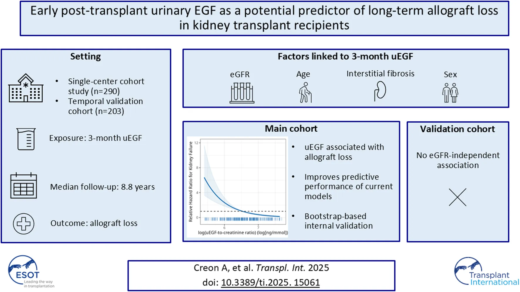 Créon A, Morin L, Garcia V, Aouni L, Rabant M, Terzi F and Anglicheau D (2025) Early Post-Transplant Urinary EGF as a Potential Predictor of Long-Term Allograft Loss in Kidney Transplant Recipients. Transpl. Int. 38:15061. doi: 10.3389/ti.2025.15061
