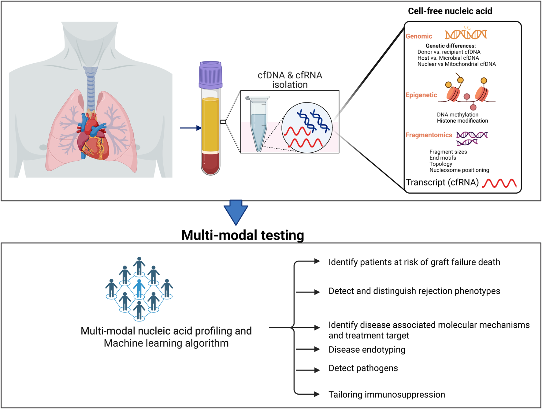 Acute rejection (AR) remains a critical vulnerability in thoracic transplantation. Clinicians rely on traditional biopsies of the allograft to detect AR and two classic phenotypes: acute cellular rejection (ACR) and antibody-mediated rejection (AMR). The traditional one-size-fits-all monitoring protocol performs repeated surveillance biopsies to detect and treat early forms of AR before irreversible allograft injury, chronic rejection, and allograft failure develop. Testing often necessitates intricate coordination among various specialties, procedural services, and advanced care planners [1, 2]. This complex model places a substantial burden on healthcare systems and patients alike, ultimately imposing significant socioeconomic across a wide spectrum of care [1, 3, 4]. Moreover, the low sensitivity and high inter-rater variability of biopsy further compromise transplant outcomes [5, 6].
